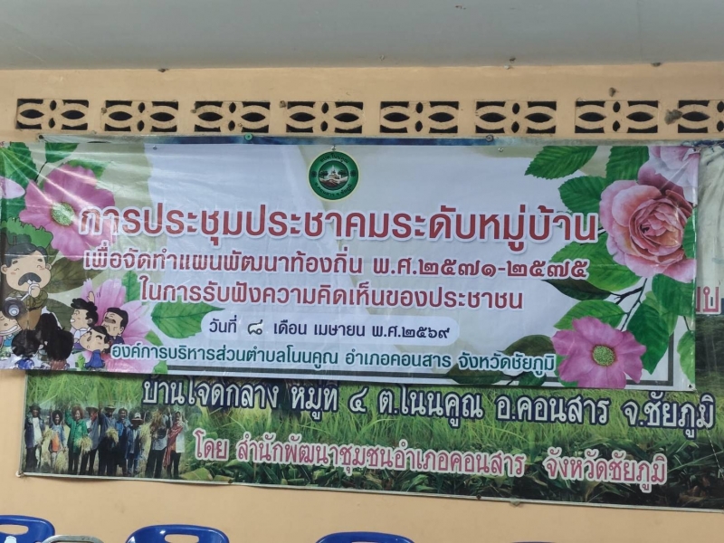 นายบุญนาค งามประเสริฐ นายกองค์การบริหารส่วนตำบลโนนคูณ พร้อมด้วยคณะผู้บริหาร ปลัดองค์การบริหารส่วนตำบล รองปลัดองค์การบริหารส่วนตำบล หัวหน้าสำนักปลัด ผู้อำนวยการกอง และเจ้าหน้าที่ที่เกี่ยวข้อง ได้จัดทำโครงการแผนพัฒนาท้องถิ่น (การประชาคมระดับหมู่บ้าน เพื่อรับฟังความคิดเห็นปัญหาความต้องการของพี่น้องประชาชนในพื้นที่ตำบลโนนคูณ ประจำปีงบประมาณ 2569 ณ ศาลาประชาคม หมู่ที่ 4 บ้านโจดกลาง โดยมี 2 หมู่บ้าน เข้าร่วมประชุม คือ หมู่ 4 บ้านโจดกลาง และหมู่ 10 บ้านโนนเจริญ โดยมีการชี้แจงวัตถุประสงค์ในการประชาคม รับฟังความคิดเห็น ปัญหา และความต้องการของประชาชน เพื่อนำข้อมูลไปประกอบการจัดทำและทบทวนแผนพัฒนาท้องถิ่นให้สอดคล้องกับความต้องการของประชาชนในพื้นที่