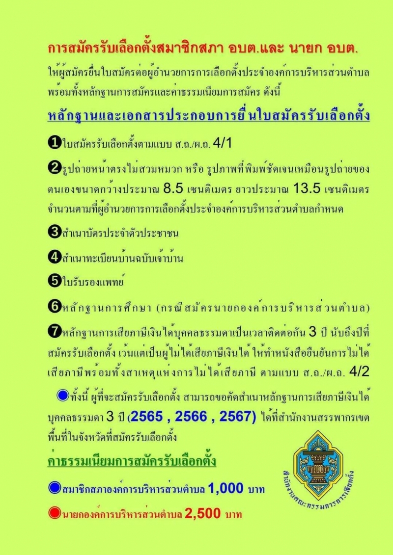 คุณสมบัติผู้สมัครสมาชิกท้องถิ่นและผู้บริหารท้องถิ่น