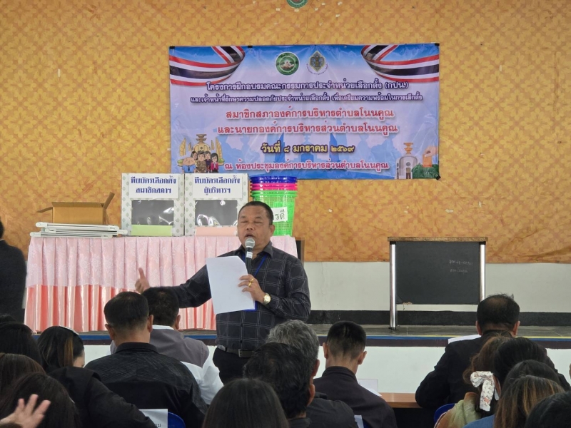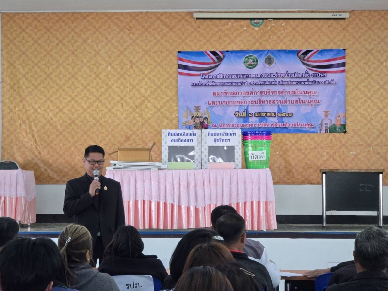 วันที่ ๘ มกราคม ๒๕๖๙ องค์การบริหารส่วนตำบลโนนคูณ อำเภอคอนสาร จังหวัดชัยภูมิ จัดโครงการฝึกอบรมคณะกรรมการประจำหน่วยเลือกตั้ง (กปน.) และเจ้าหน้าที่รักษาความปลอดภัยประจำหน่วยเลือกตั้ง เพื่อเตรียมความพร้อมในการเลือกตั้งสมาชิกสภาองค์การบริหารส่วนตำบลโนนคูณ และนายกองค์การบริหารส่วนตำบลโนนคูณ ณ ห้องประชุมองค์การบริหารส่วนตำบลโนนคูณ