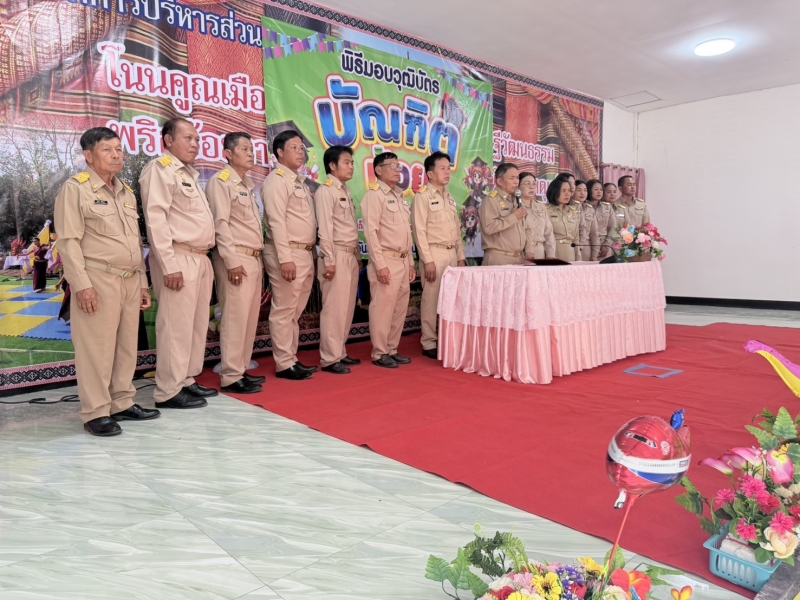 นำโดย นายบุญนาค งามประเสริฐ นายกองค์การบริหารส่วนตำบลโนนคูณ พร้อมด้วย คณะผู้บริหาร คณะกรรมการศูนย์ฯ ผู้นำท้องถิ่น เจ้าหน้าที่ อบต.โนนคูณ คณะครูและผู้ปกครอง เข้าร่วม โครงการบัณฑิตน้อย ประจำปีงบประมาณ 2569