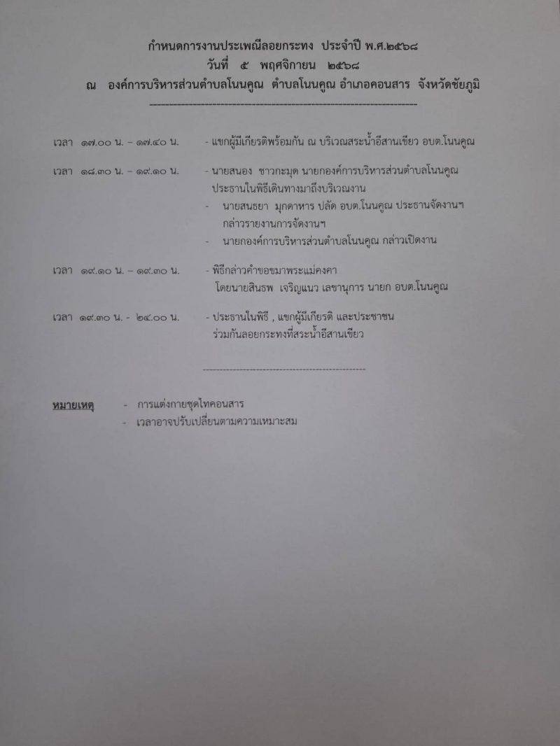 ขอประชาสัมพันธ์ วันพุธที่ 5 พฤศจิกายน 2568 องค์การบริหารส่วนตำบลโนนคูณ ได้จัดโครงการอนุรักษ์และสืบสานประเพณี วันลอยกระทง ณ บริเวณสระอีสานเขียว อบต.โนนคูณ