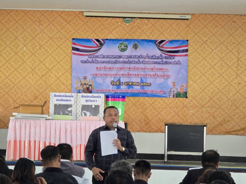 วันที่ ๘ มกราคม ๒๕๖๙ องค์การบริหารส่วนตำบลโนนคูณ อำเภอคอนสาร จังหวัดชัยภูมิ จัดโครงการฝึกอบรมคณะกรรมการประจำหน่วยเลือกตั้ง (กปน.) และเจ้าหน้าที่รักษาความปลอดภัยประจำหน่วยเลือกตั้ง เพื่อเตรียมความพร้อมในการเลือกตั้งสมาชิกสภาองค์การบริหารส่วนตำบลโนนคูณ และนายกองค์การบริหารส่วนตำบลโนนคูณ ณ ห้องประชุมองค์การบริหารส่วนตำบลโนนคูณ